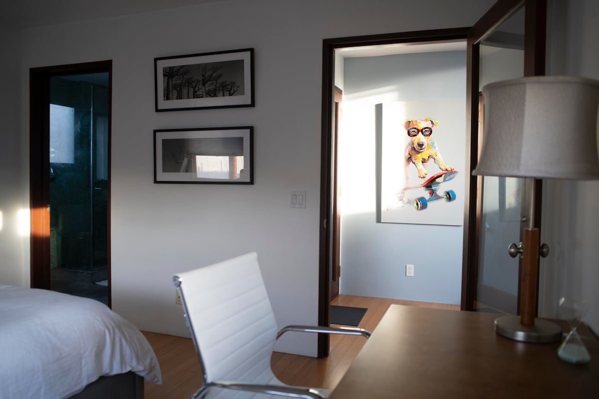 Newly updated Venice guesthouse giving great tranquil & relaxing vibes. Spacious for a guesthouse, full kitchen, newer features & furnishings, and views abound 360 degrees across the rooftop patio/balcony. Second, smaller balcony right off the living room equipped with its flatscreen tv. Call this private guesthouse your temporary home soon if you should be visiting LA for vacation, work, reconnecting with family you haven't seen in a long time, or if you just need a weekend change of scenery!!